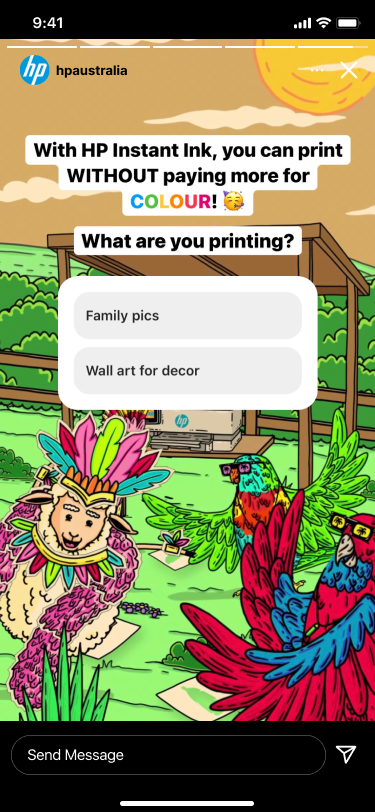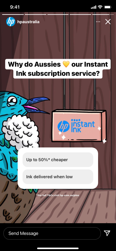 To launch HP's Instant Ink service in Australia, we decided to collaborate with Mulga—a famous local artist—to create 4 films. Each one has an iconic Australian animal as a protagonist and highlights the benefits of our brand-new service.